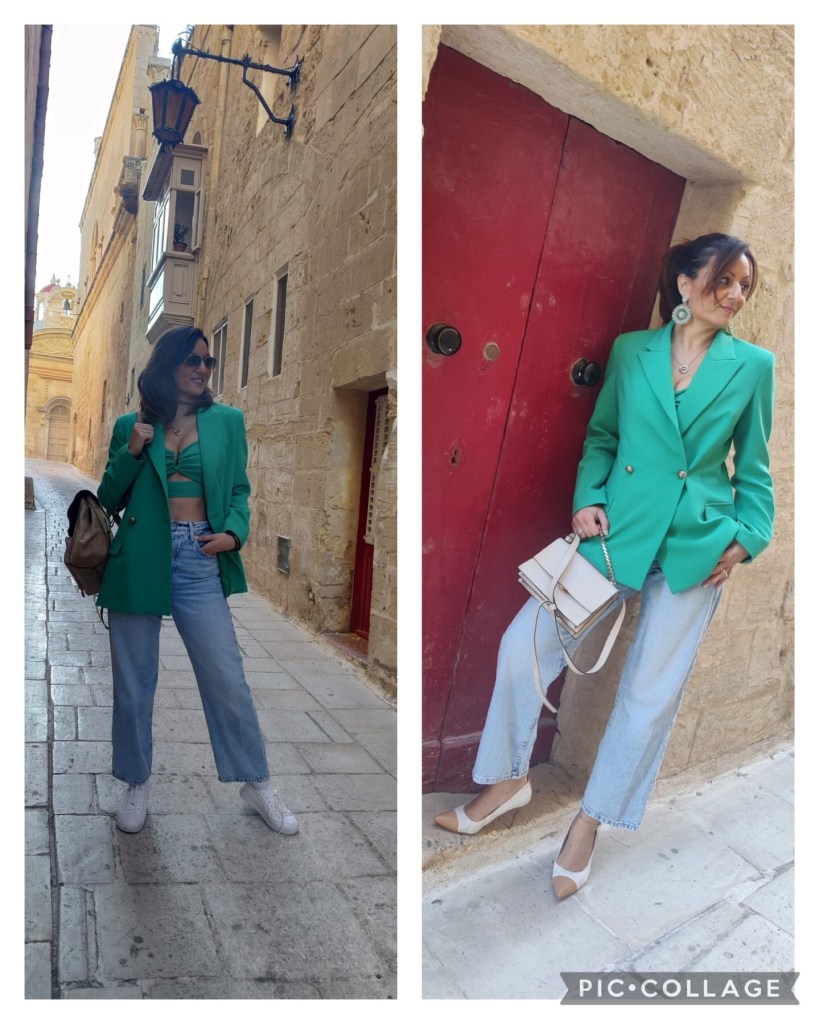 I hope you all had a good week. The temperature seems to be cooling down a little bit (finally!) Now we can start thinking of autumn outfits…yeah! Today, I will be sharing with you three outfit ideas, but what I did is change the accessories for each, and voila a different look is created. The idea is to make the most of our items of clothing. Re-inventing the outfit, make it feel new and different. Have a look below and see what I did 🙂 As an aside, a friend patiently came taking the pics in our beautiful Mdina. We are no professionals but we had a blast, going from one place to another, changing in bathrooms and me trying not to feel uncomfortable posing for the pics 😉 A big thank you to my friend for tagging along.