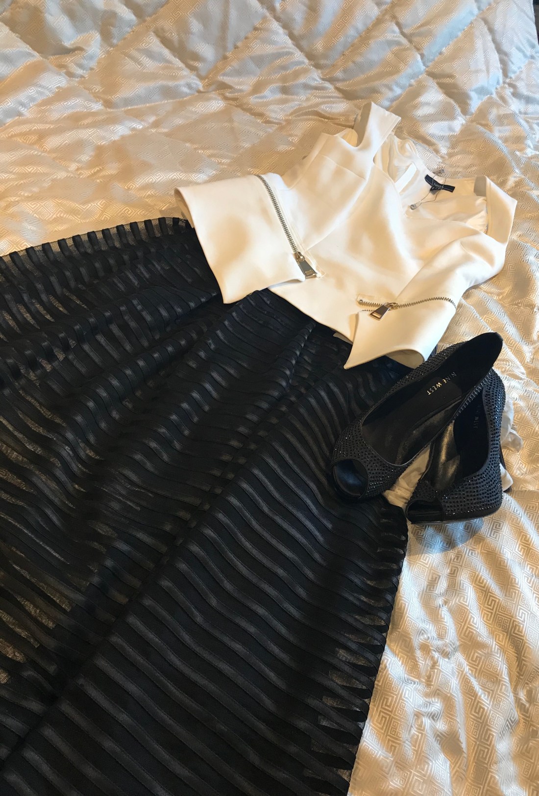 Here are three different outfits with the same pair of trousers. A skirt which can be worn for an elegant do, or for a hip party.