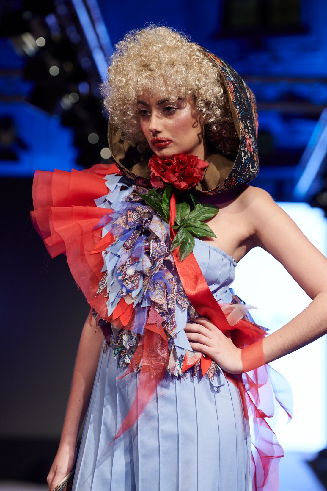The designer combined national colours, military prints and decorative elements with different textures such as silk, organza and lace to create a lovely, original collection. The combination of military colours together with softer shades created something quite unique.