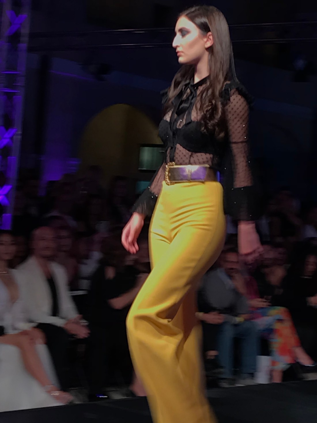 Three outfits really caught my eye, the tutu skirt combined with a leather bodice. Femininity yet power woman look 😉 My other favourite was a pair of yellow straight cut trousers coupled with a black transparent top, again Grech managed to create a seductive look in a very elegant manner. Finally, I fell in love with the red flowy gown, with a long tail – elegance with a touch of flamenco… ole!