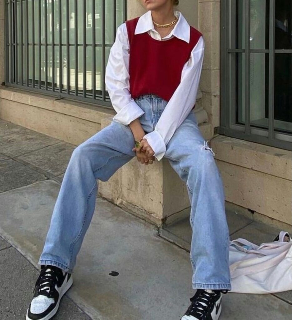 Trousers beneath a dress, crop tops over shirts…(anyone recalls the 90s…?;) and the sweater vests…! If you want to follow this season’s trend without spending much, shop sweater vests…you can find these in high street stores in various colours, different knit patterns and textures. They are so easy to pair up with different items 😉