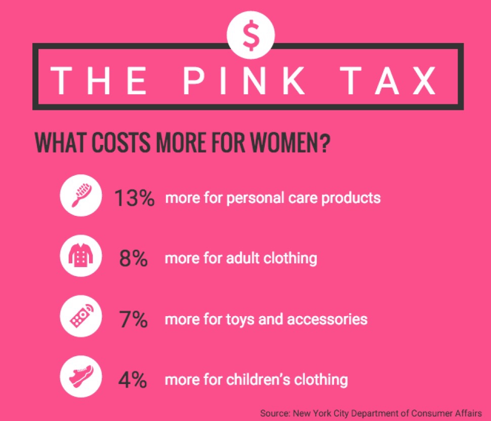 So ladies, let us be on the look out when products are marketed for women…we could be paying more solely for the packaging. If you carry our a simple internet search of “pink tax”, you will be surprised at all the items we get to pay more for than men!